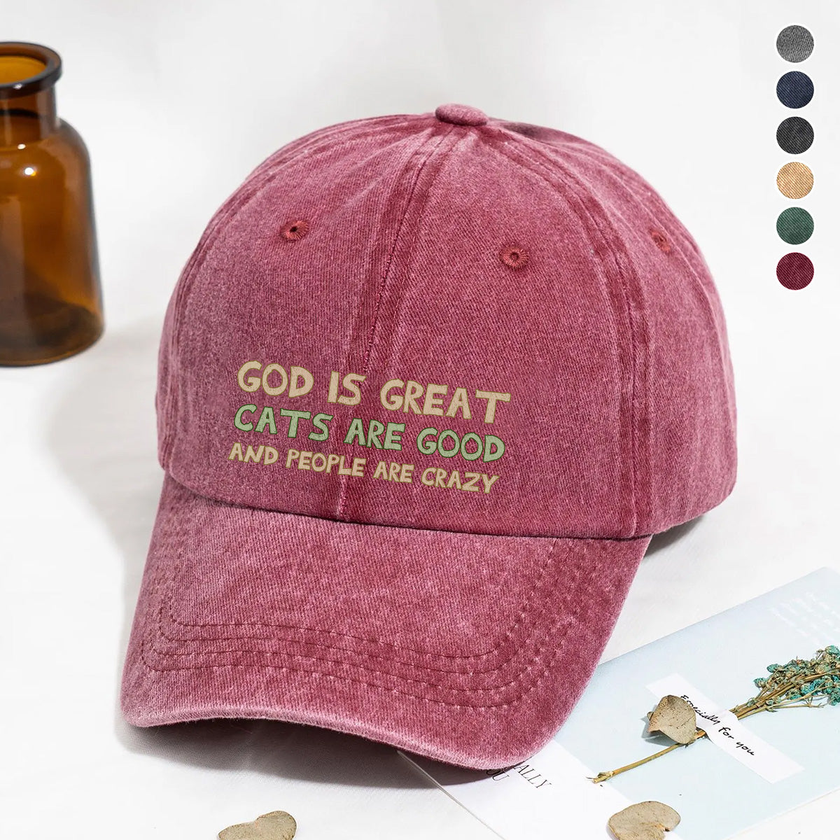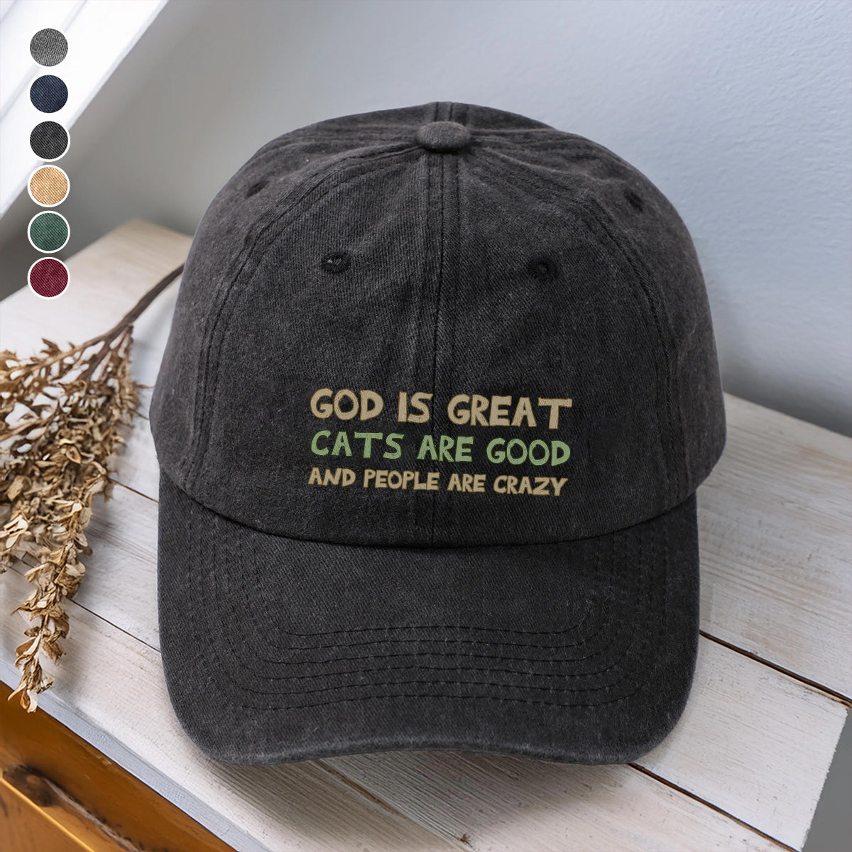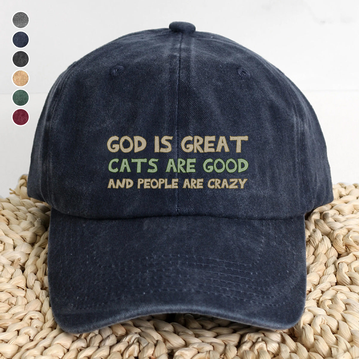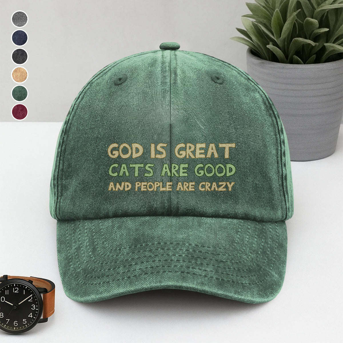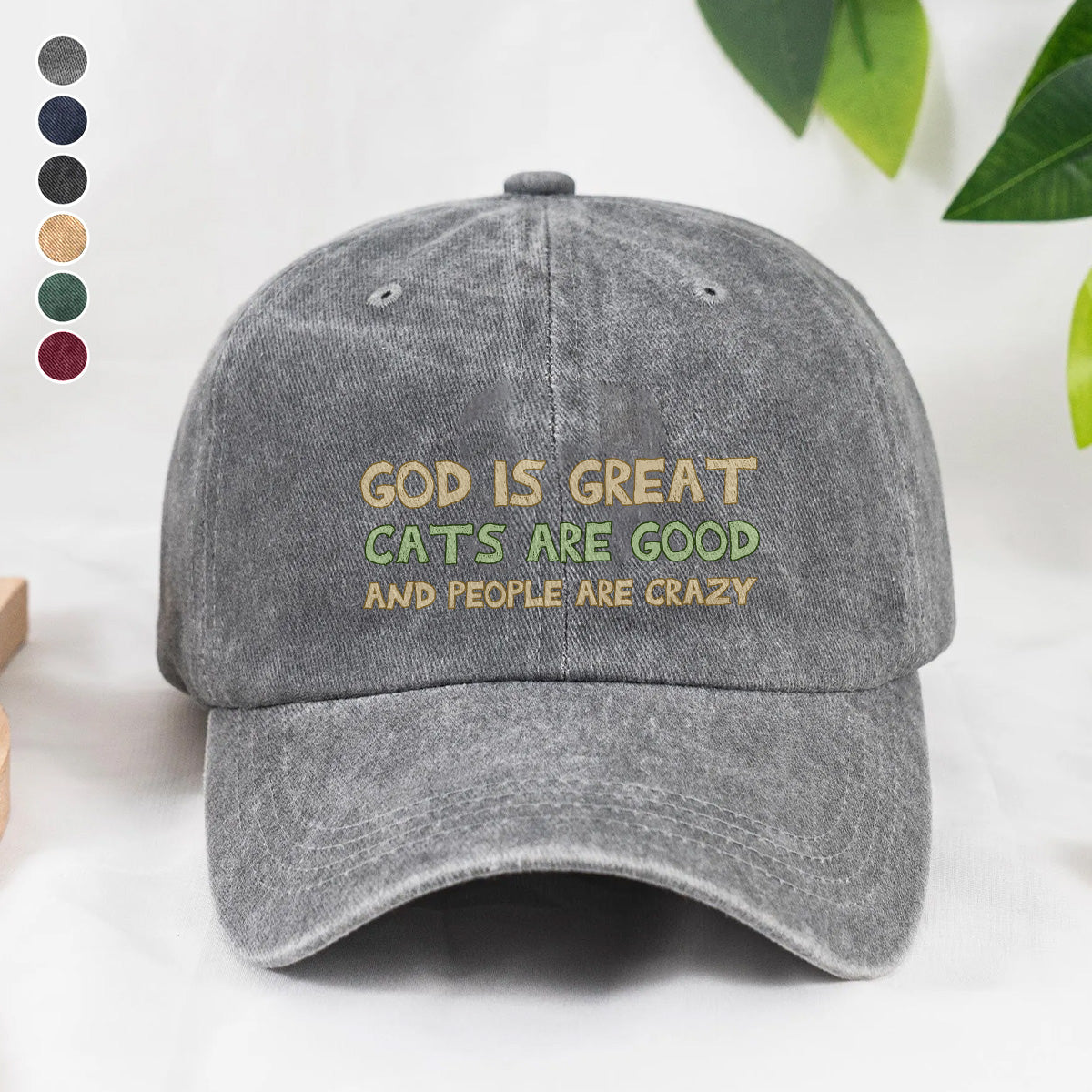 PSC23 God Is Great Cats Are Good And People Are Crazy - Wash Denim Cap