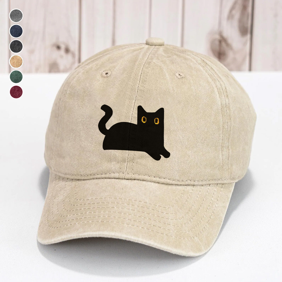 PSC29 Black Cat Funny Cat Lover - Wash Denim Cap