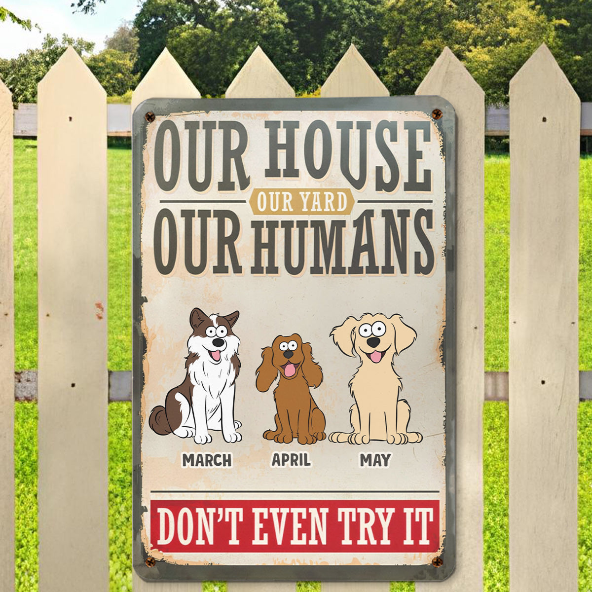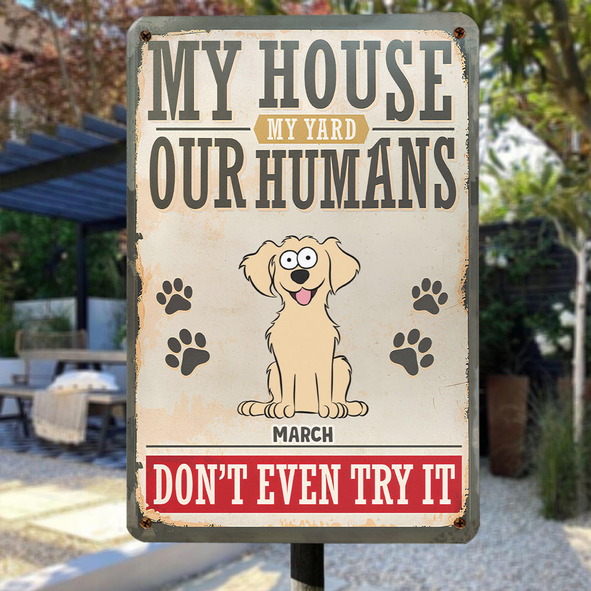 PSMT16 My House My Yard My Human Don't Even Try It Dog Lover-Personalized Custom Metal Sign