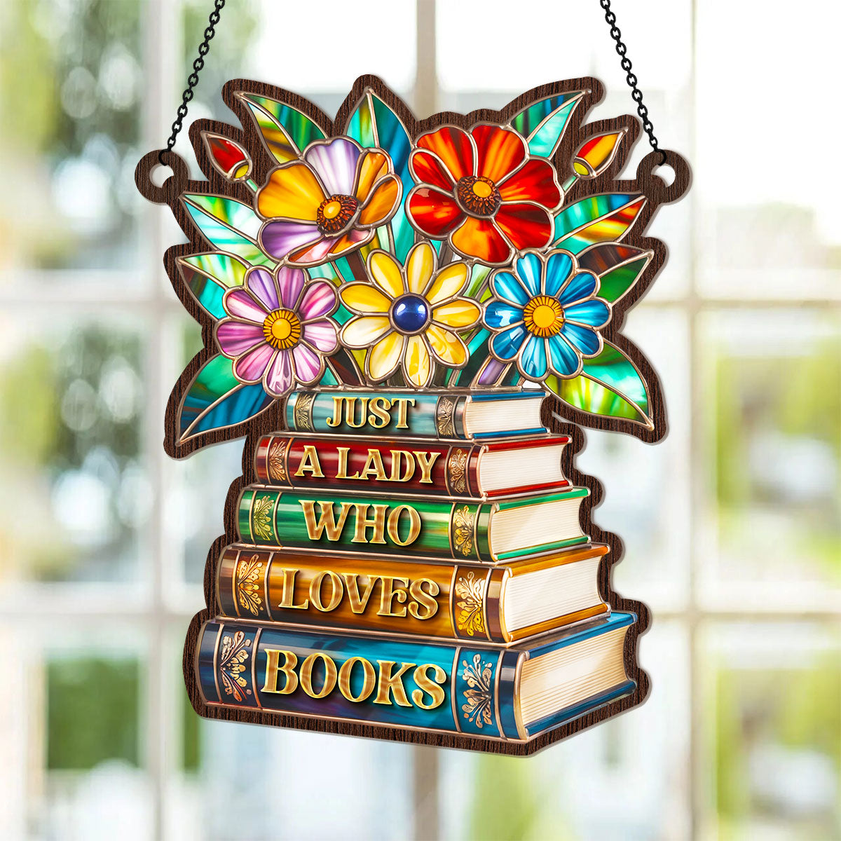 PSSW14 Just A Lady Who Loves Books Window Hanging Suncatcher Ornament