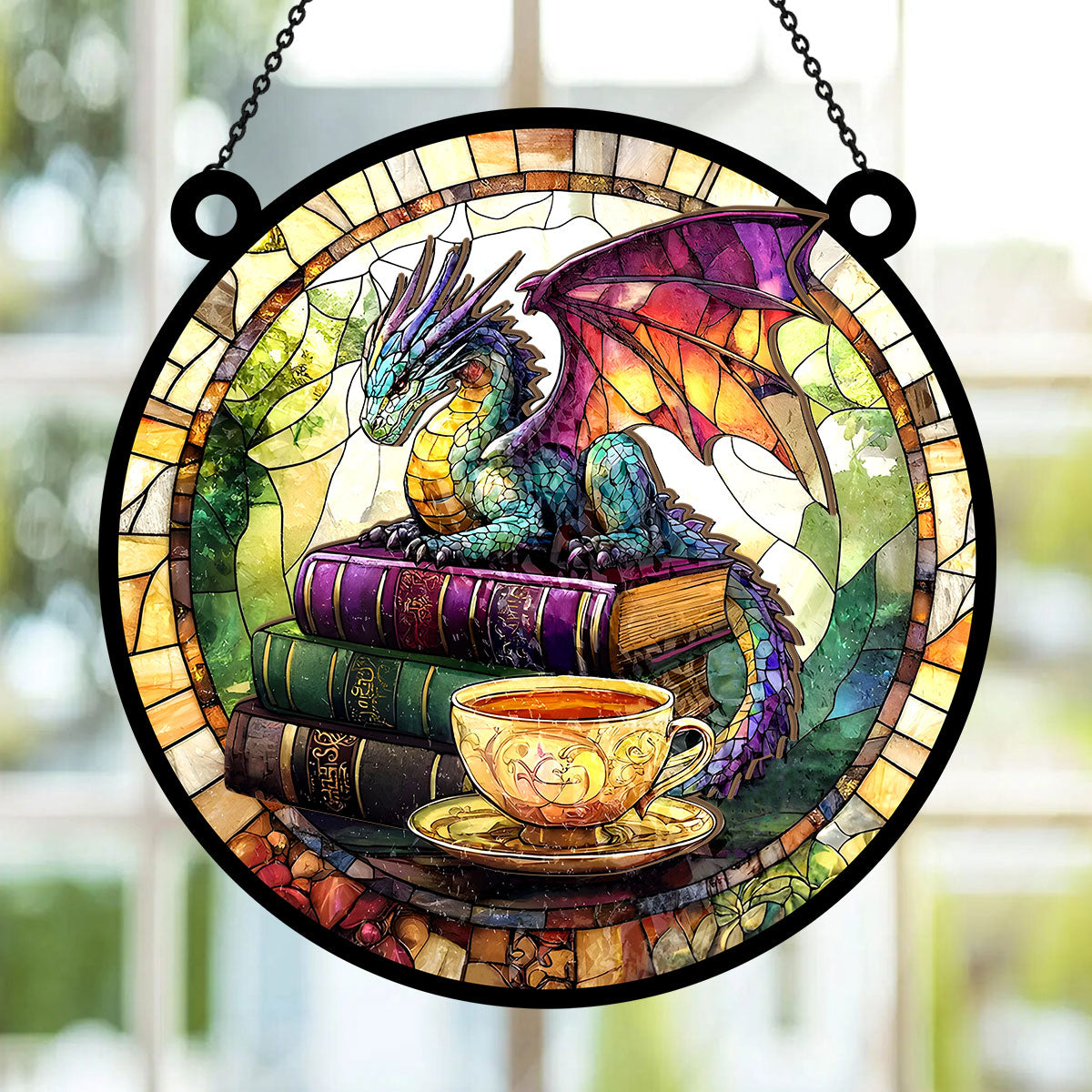 PSSW16 Book Dragon Window Hanging Suncatcher Ornament