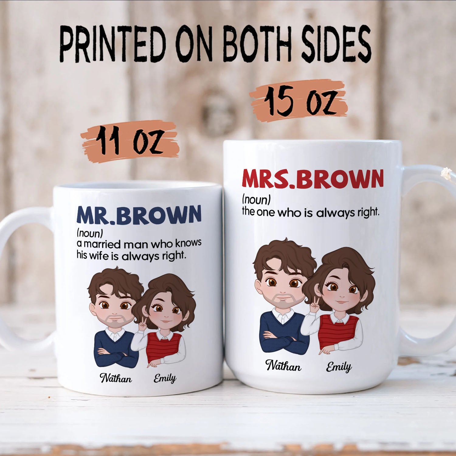 PST115 Mr And Mrs Married - White Mug Accent Mug (Double-sided print: one side for him, one side for her)