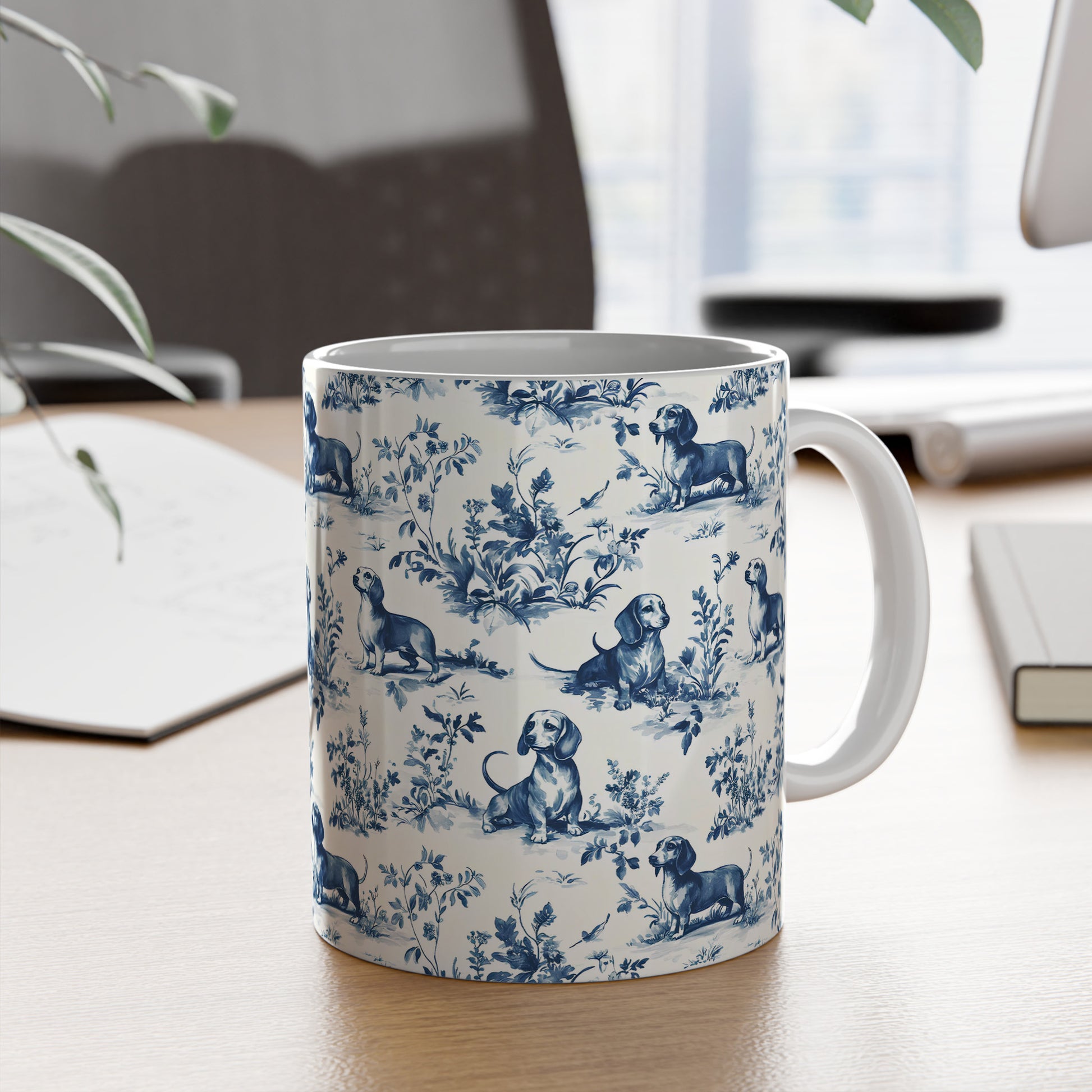 PST67 Toile De Jouy Style Dachshund Dog Lover - White Mug Accent Mug