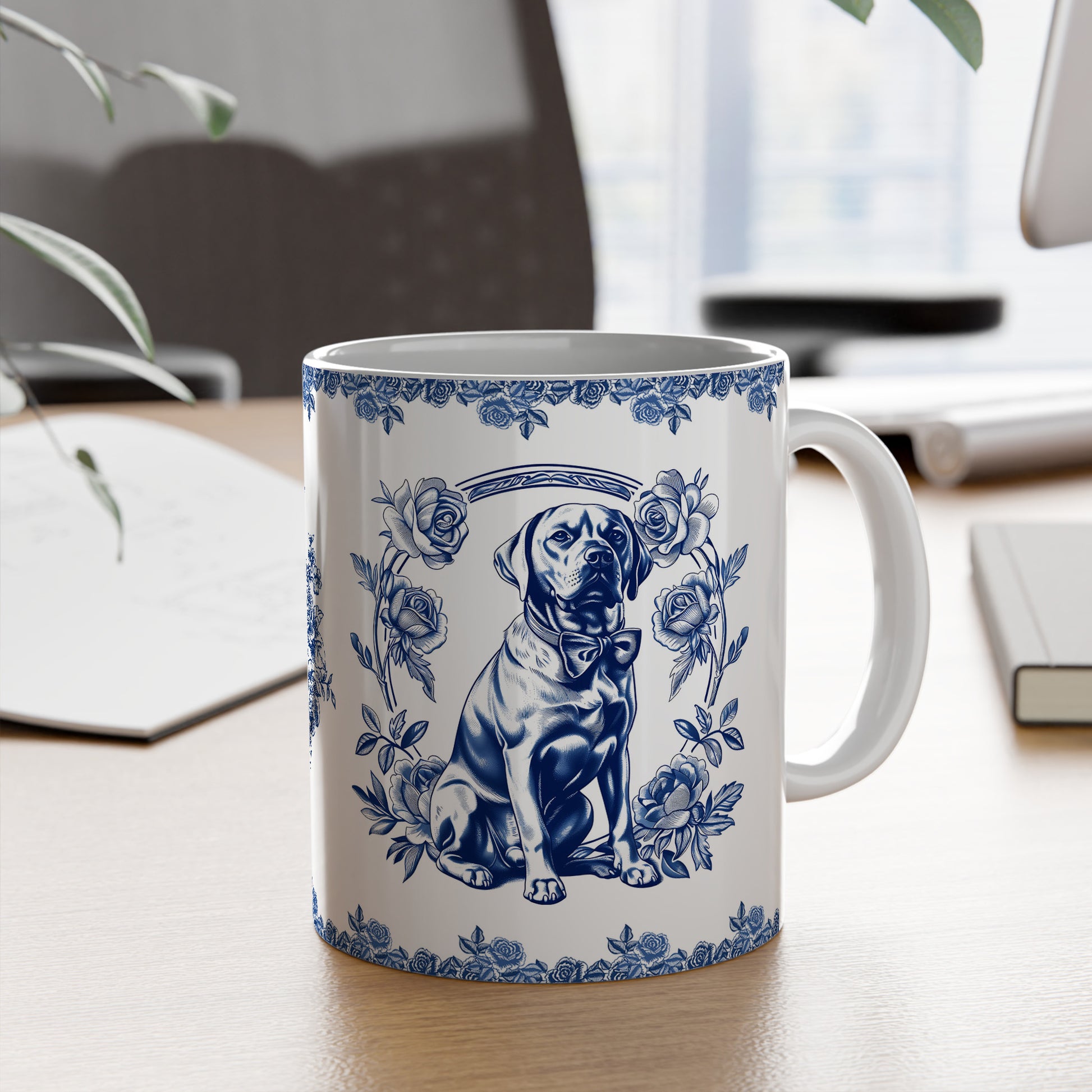 PST74 Toile De Jouy Style Rose Labrador Dog Lover - White Mug Accent Mug
